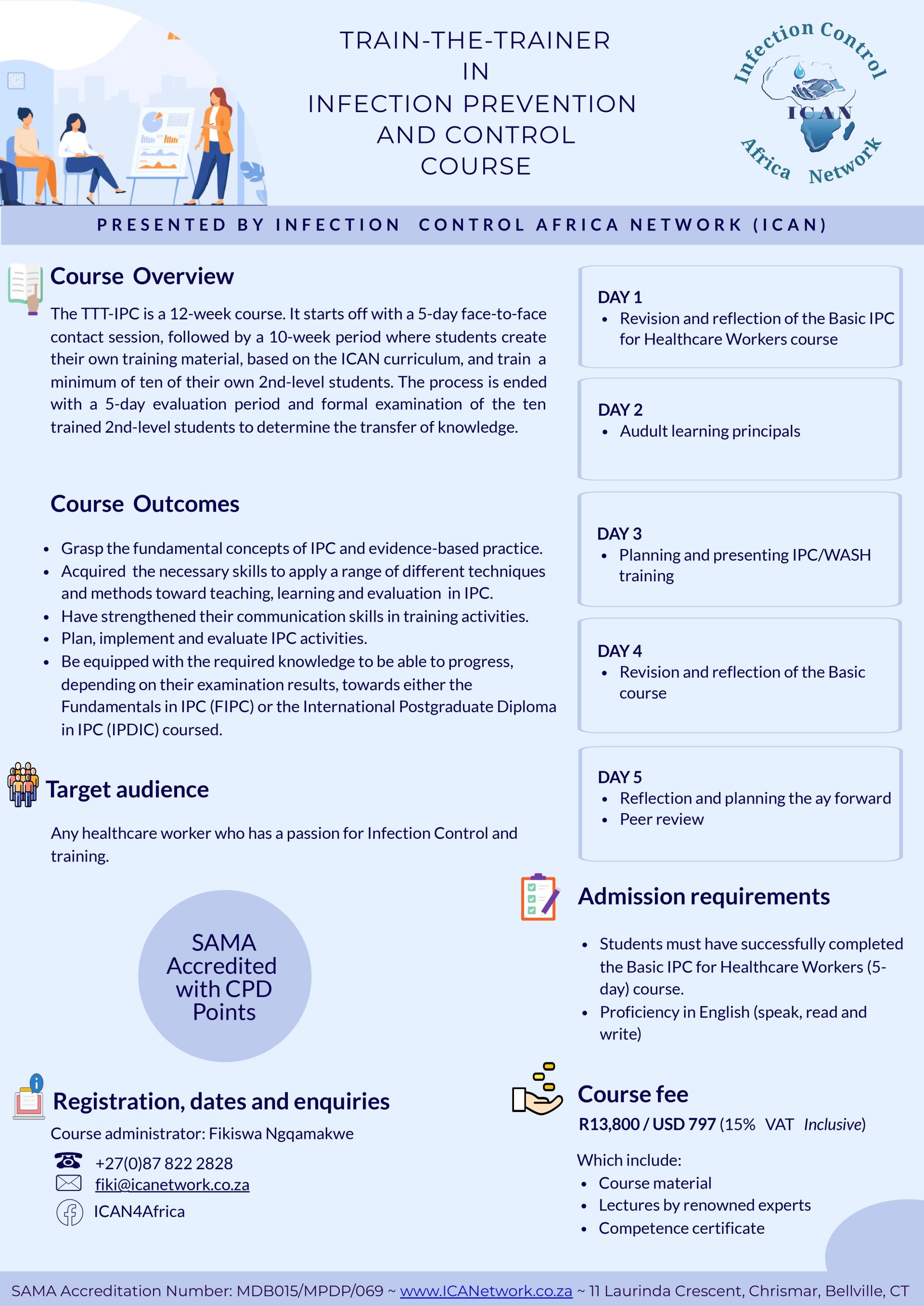 The course is designed to equip healthcare workers with the basics of IPC and with skills in adult training, designing training packages to be able to accurately and effectively transfer IPC knowledge to others. It is best suited to IPC practitioners who want to expand training to other healthcare workers.