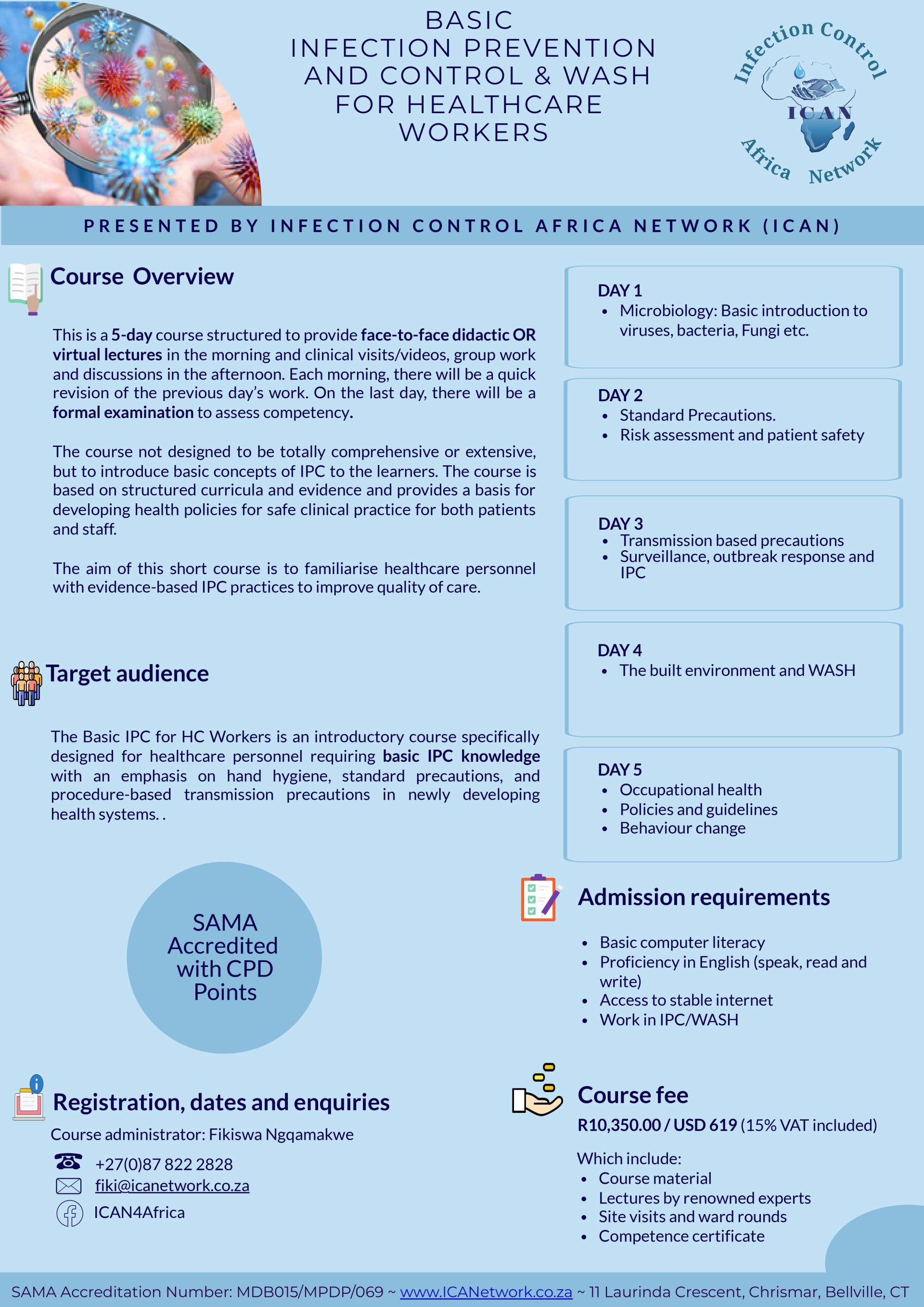 This is a 5-day course structured to provide face-to-face didactic OR virtual lectures in the morning and clinical visits/videos, group work and discussions in the afternoon. Each morning, there will be a quick revision of the previous day’s work. On the last day, there will be a formal examination to assess competency.